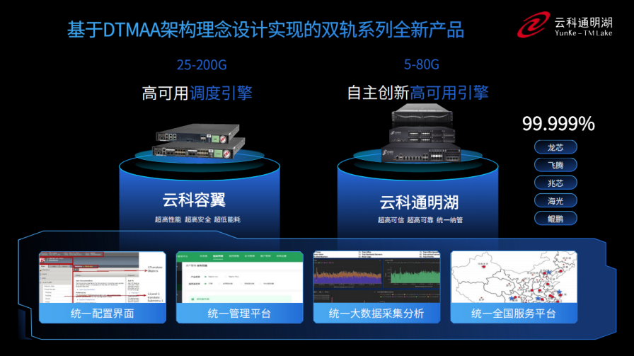 同时,为了更好的适配双轨超高可用架构,mile米乐集团推出了容翼系列和云科通明湖信创系列两大应用交付控制器产品。